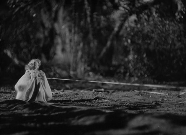 The Serbian woman in Cat People who disrupts a wedding party to call Irena (Simone Simone) out as a kindred spirit; the anguished shut-in of The Curse of the Cat People, pure product of a stifled childhood; the consumptive neighbor surrendering herself to a certain death in The Seventh Victim. If we follow Alexander Nemerov’s contention in Icons of Grief: Val Lewton’s Home Front Pictures that such cameos exert a kind of silent authority over Lewton’s subterranean cinema (the shared emphasis on bit players being one of many suggestive suggestive links with Preston Sturges, whose run at Paramount almost exactly coincided with the RKO period), then Russell is the most privileged figure of this uncanny elect, running like a red thread through Lewton’s films. In Cat People, she brings the party and the film itself to a standstill. Any lingering uncertainty as to whether the fantastic curse is “true” falls away; with Russell’s entrance, the suggestion is damning enough. Where the other returning actors in The Curse of the Cat People more or less reprise their earlier roles in Cat People, Russell has metamorphosized into the tragically spurned adult daughter; in some subliminal way, at least, she is the point at which the plots break down. As the consumptive in The Seventh Victim, she finally stands wholly outside plot—a hallucinatory vision of the death drive in this, Lewton’s most personal and harrowing film.